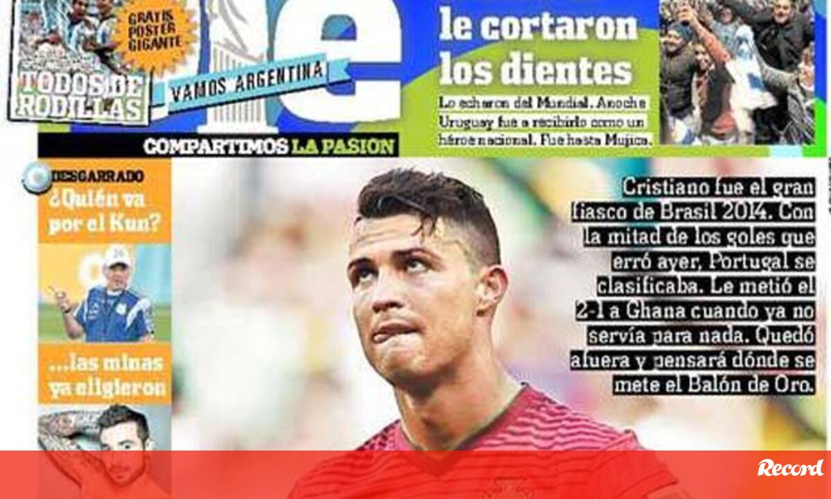 Na Argentina, o país do sempre "rival" Messi, CR7 faz mesmo a manchete, atribuindo-lhe o epíteto de "fiasco do Mundial".