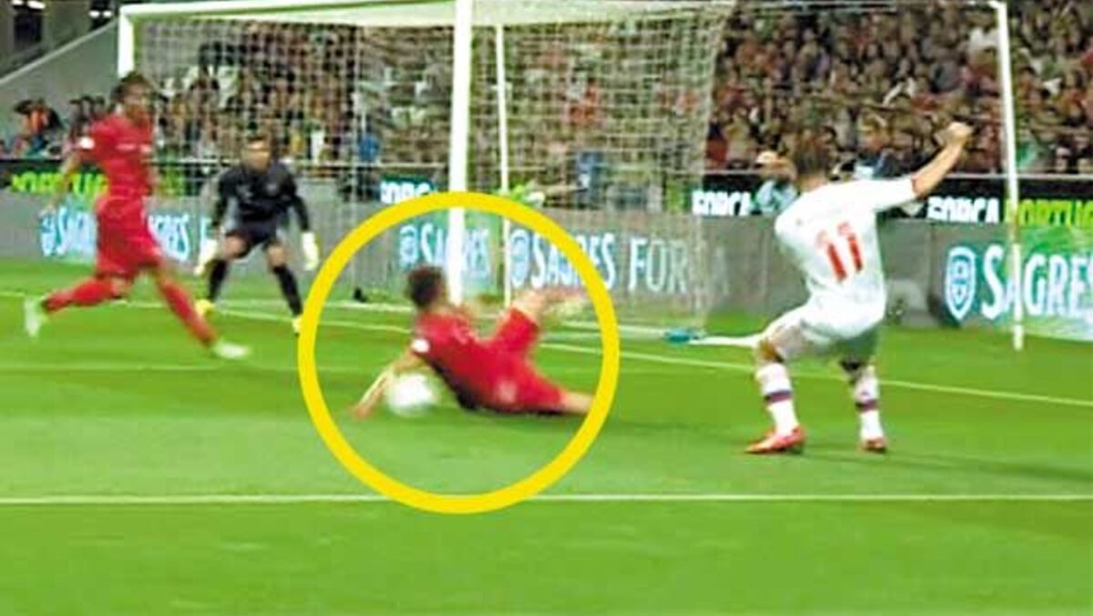 39 ' - PENÁLTI SIM. Kerzhakov faz o centro rasteiro e Coentrão corta com o braço (ERRADO)