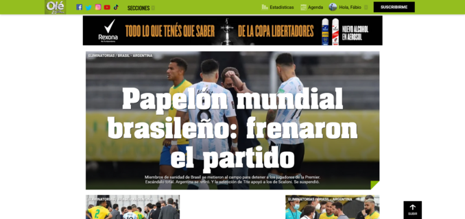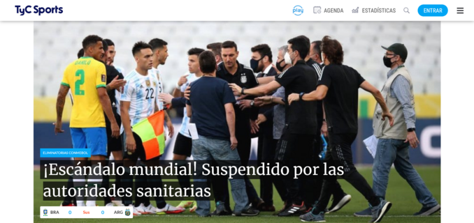 Estava tudo a postos a ver mais um superclássico entre Brasil e Argentina, a contar para a fase de qualificação sul-americana para o Mundial'2022, quando a partida foi prontamente interrompida aos cinco minutos de jogo por elementos da Anvisa, autoridade sanitária do Brasil. Em causa, estava a presença de quatro jogadores argentinos (Martínez, Giovani Lo Celso, Cristian Romero e Emiliano Buendí) que terão supostamente violado as regras impostas pelas autoridades de saúde brasileiras.
