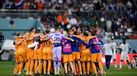 Após a qualificação para os quartos-de-final do Mundial do Qatar, a seleção holandesa chegou em grande euforia ao hotel, depois do triunfo diante dos Estados Unidos.
