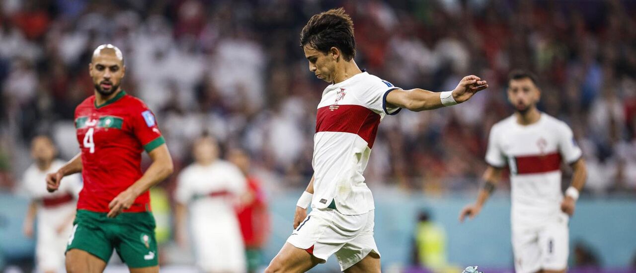 Fernando Santos reforçou a aposta no onze que derrotou a Suíça nos oitavos de final, fazendo entrar apenas Rúben Neves para o lugar de William Carvalho. Gonçalo Ramos voltou a ser a referência ofensiva, mas a abordagem defensiva de Marrocos condicionou bastante a intervenção do avançado português no jogo. A seleção marroquina, organizada em 4x1x4x1, limitou os espaços entre linhas onde Portugal tem jogadores determinantes, dificultando a chegada a zonas de finalização. Os criativos portugueses (Bruno Fernandes, Bernardo, Félix) começaram a sentir necessidade de recuar para assumir as rédeas da manobra ofensiva, mas faltavam posteriormente soluções no último terço para dar sequência [1].