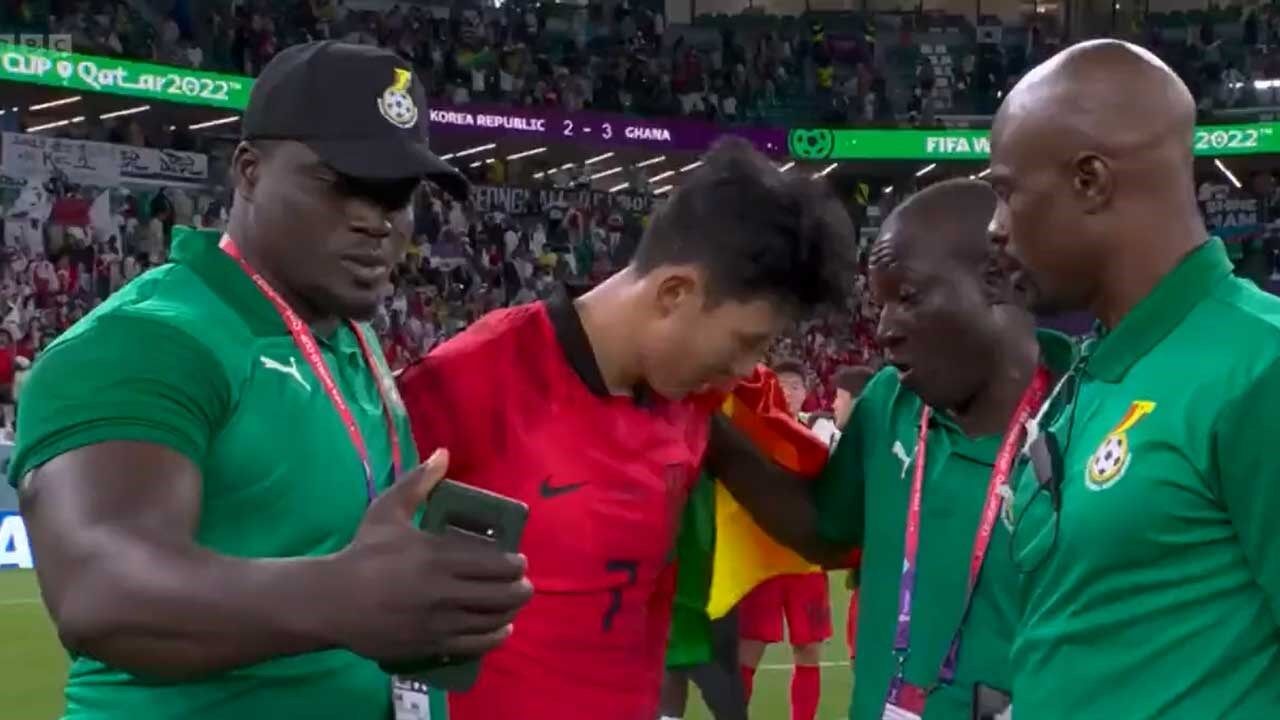 O Gana bateu, esta segunda-feira, a Coreia do Sul (3-2) de Paulo Bento e somou os primeiros pontos no grupo de Portugal no Mundial'2022, num jogo que contou com um momento curioso já após o apito final. Numa altura em que vários jogadores sul-coreanos se encontravam cabisbaixos no relvado, um dos treinadores da seleção africana aproximou-se de Son, e pediu para tirar uma selfie com o craque, que estava... lavado em lágrimas.