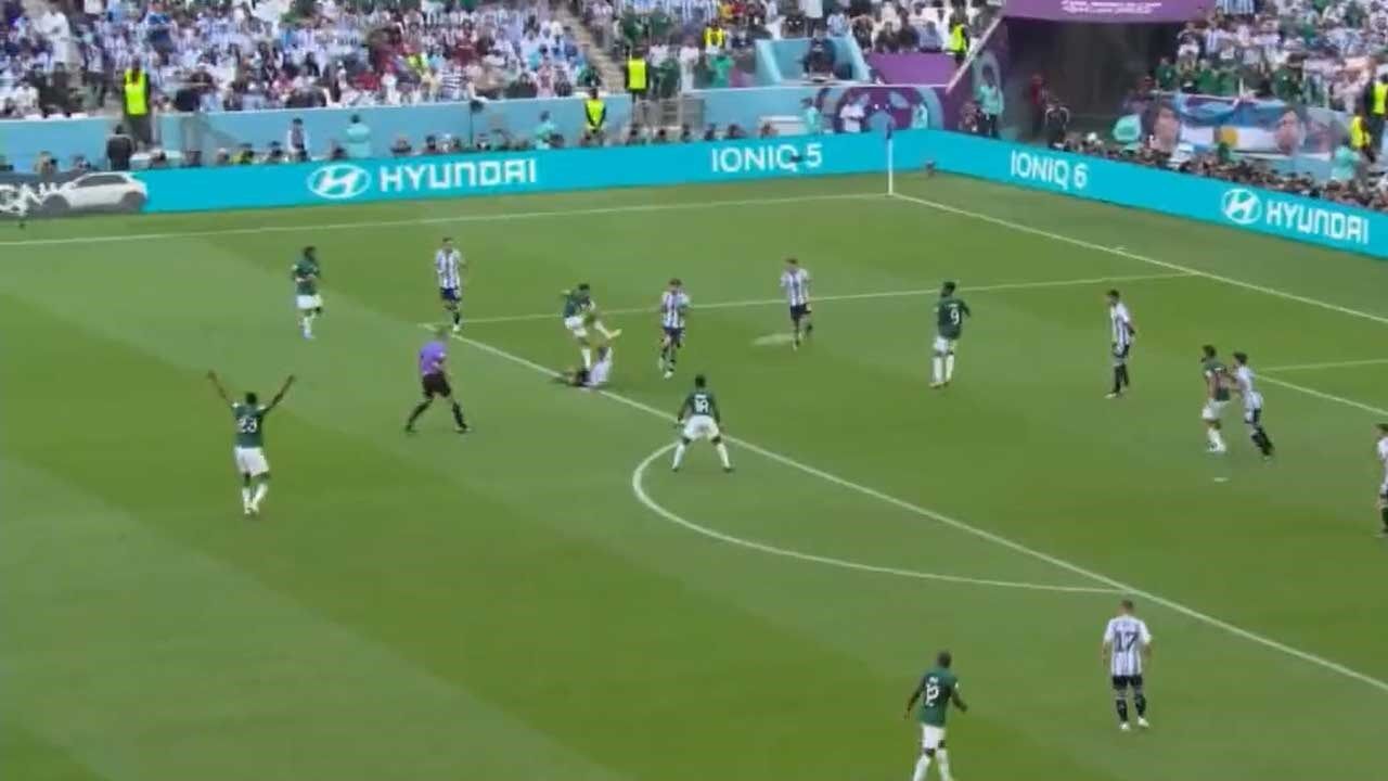 A Arábia Saudita chegou, esta terça-feira, à reviravolta no marcador diante da Argentina com este golaço de Salem Al Dawsari. O médio, que atua pelo Al-Hilal, tirou vários adversários do caminho já dentro da área albiceleste e atirou forte, de pé direito e num remate cruzado, para o fundo da baliza de Emiliano Martínez, que ainda tocou na bola, mas não o suficiente para a desviar da trajetória de golo.