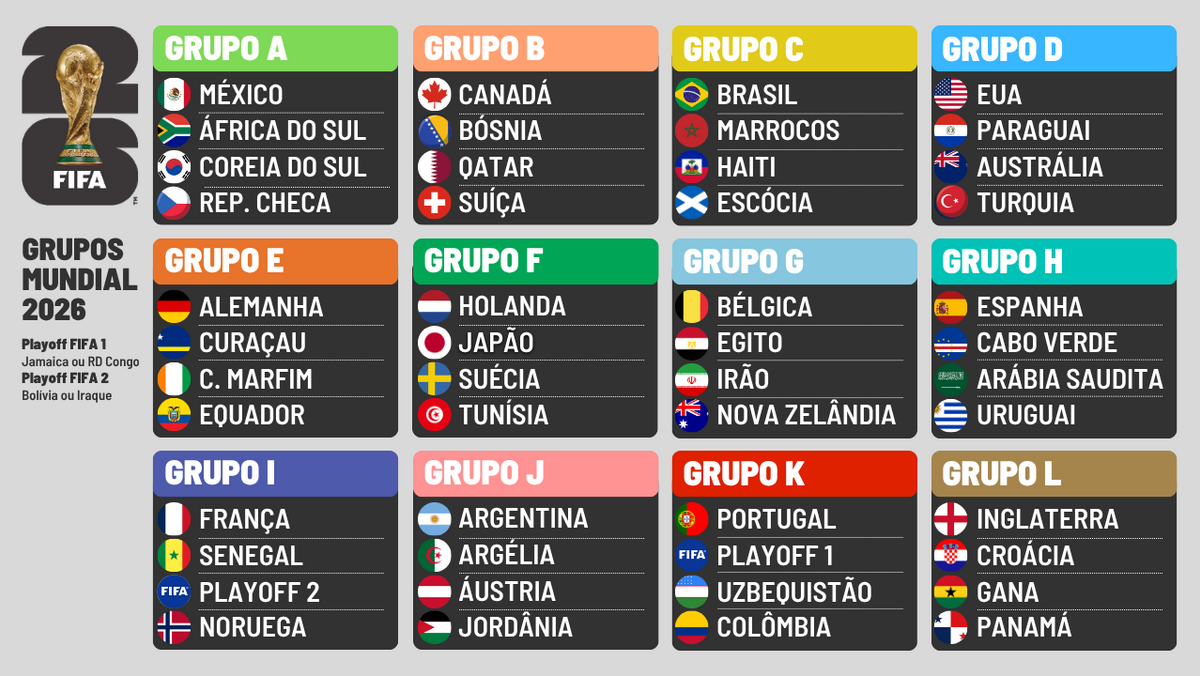 Recorde-se que a Seleção Nacional vai abrir a fase final precisamente contra a Jamaica ou a RD Congo, a 17 de junho, em Houston. A 23, novamente no mesmo palco, enfrentará o estreante Usbquequistão e terminará com a Colômbia, dia 27, em Miami. Apuram-se para os 16 avos de final os dois primeiros de cada grupo (são 12), mais os oito melhores terceiros.