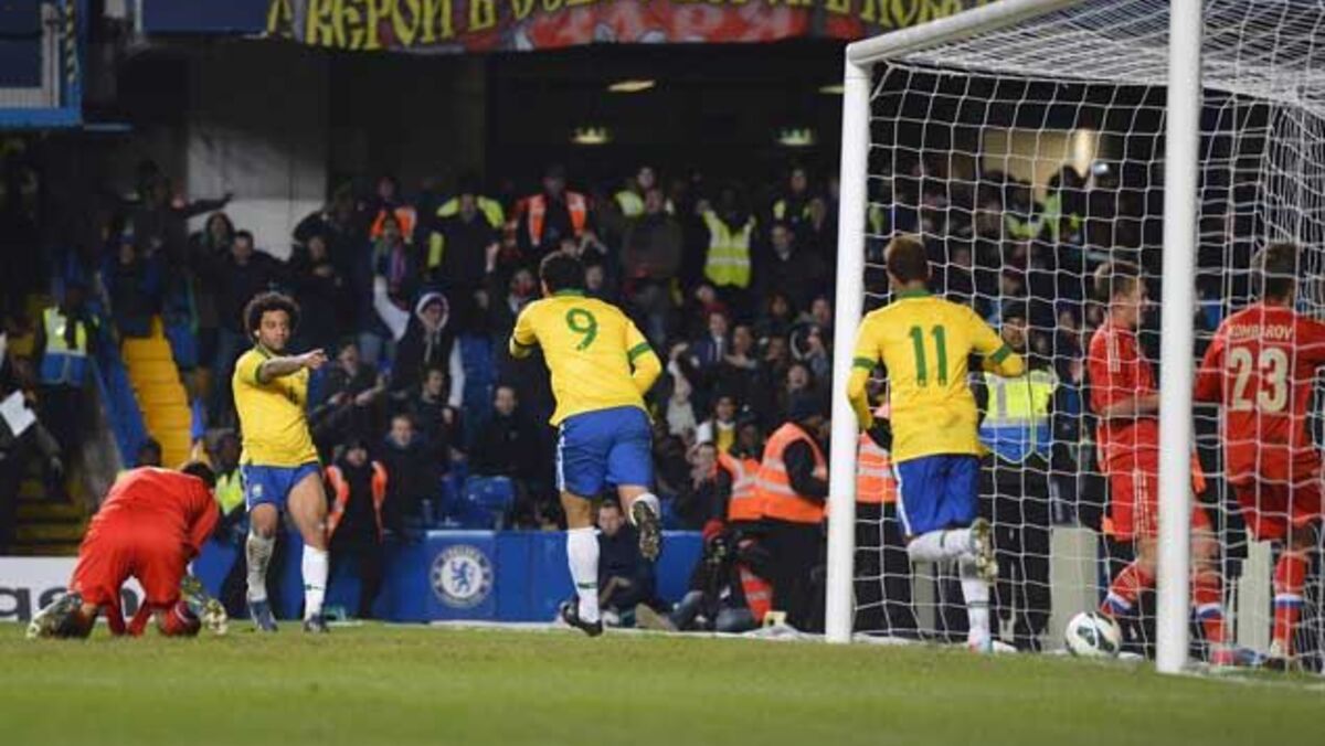 Os russos, adversários de Portugal na fase de qualificação para o Mundial'2014, adiantaram-se no marcador aos 73', por Fayzulin, num lance caricato onde a formação do leste europeu mais parecia estar a jogar futsal dentro da grande área canarinha, adiando o remate uma e outra vez ou vendo o disparo morrer nas pernas de um qualquer adversário. Acabaria por ser o médio do Zenit a introduzir a bola na baliza.