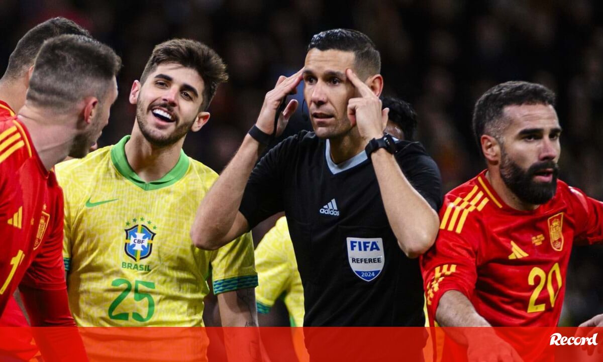 O árbitro português António Nobre foi o escolhido para dirigir o particular desta terça-feira entre a Espanha e o Brasil (3-3), no Santiago Bernabéu, mas é caso para dizer que viveu uma noite... complicada. O juiz, que não contou com a ajuda do VAR na partida, precisou de decidir um par de lances que foram decisivos para o resultado final e acabou por ser alvo de muitas críticas, principalmente da parte da seleção canarinha.