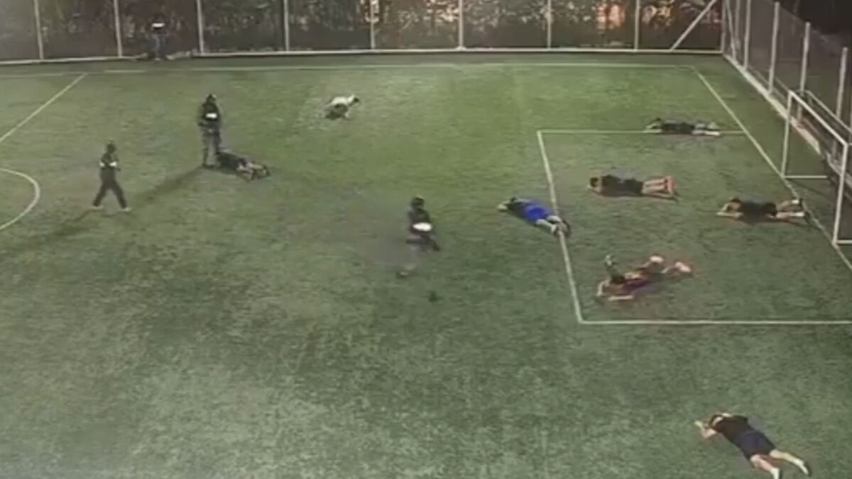 Segundo a imprensa internacional, bem como alguns vídeos que estão a ser partilhados nas redes sociais - e que contêm imagens (muito) sensíveis -, os três homens entraram no recinto de rompante, obrigando todos os nove presentes no relvado a deitarem-se no chão.