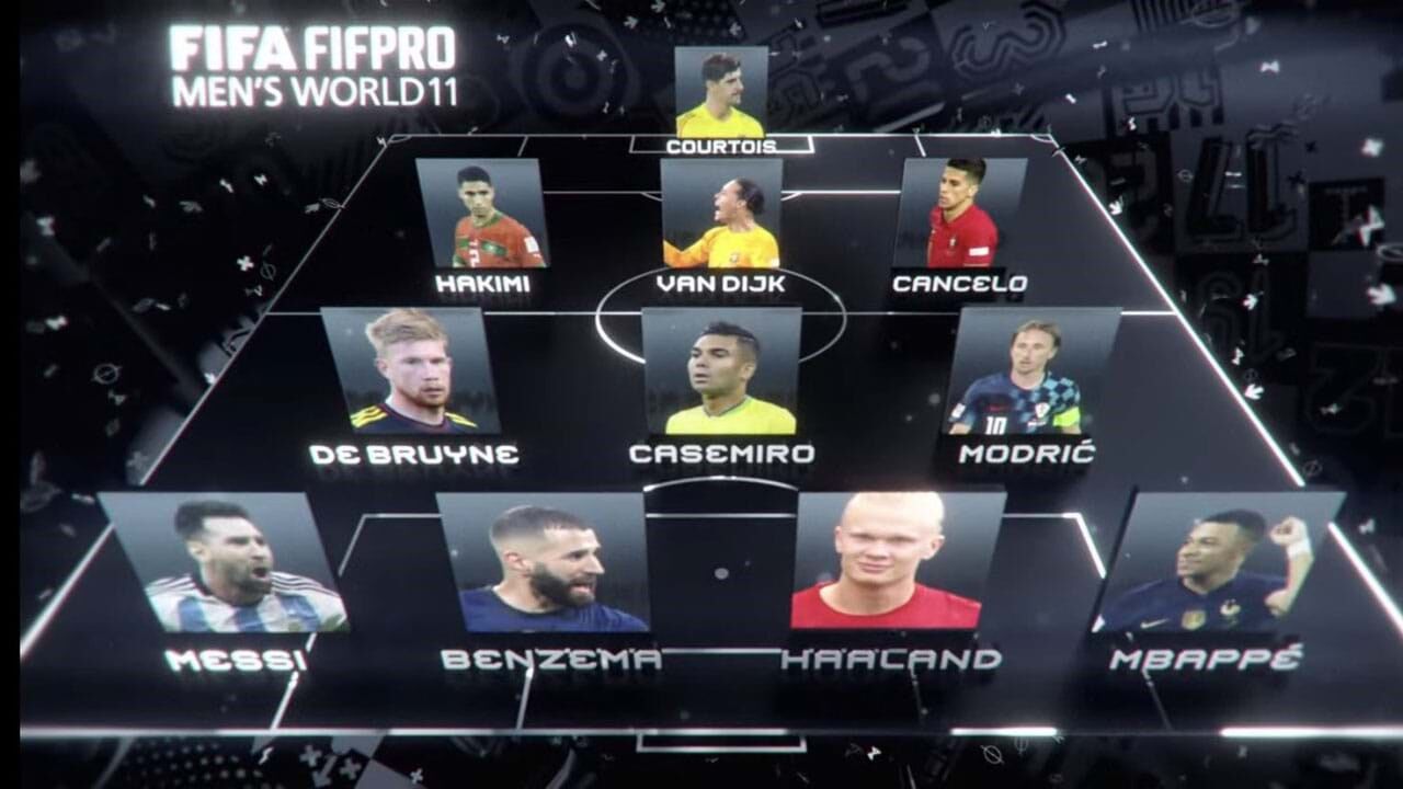 O 'onze' de 2022 conta ainda com o guarda-redes Courtois (Real Madrid), os médios De Bruyne (Manchester City), Modric (Real Madrid) e Casemiro (Real Madrid/Manchester United), e os avançados Mbappé (Paris Saint-Germain), Benzema (Real Madrid) e Haaland (Borussia Dortmund e Manchester City).