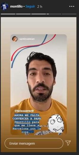 O argentino Walter Montillo contou que o seu filho de 9 anos mandou mensagens a partir do seu telemóvel para Lionel Messi, Luis Suárez e Gerard Piqué, através do Instagram.