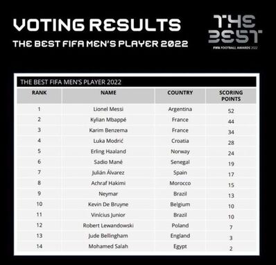 Os argentinos saíram como os grandes vencedores da noite na gala FIFA The Best, em Paris. Lionel Messi foi consagrado como o melhor do Mundo, superando a concorrência de Benzema (ausente da cerimónia) e de Mbappé, seu colega de equipa, que o cumprimentou de forma calorosa. Além disso, Lionel Scaloni arrebatou o prémio de melhor treinador de 2022, Emiliano Martínez é o melhor guarda-redes e os adeptos argentinos foram os melhores fãs.
