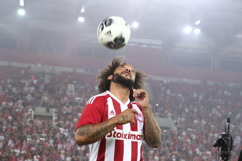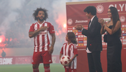 Momentos antes, foi a vez do presidente do Olympiacos, Vangelis Marinakis, falar ao público para 'apresentar' o novo reforço para a defesa. "Temos o prazer de ter entre nós o 'Global Marcelo', uma verdadeira lenda no equipa lendária. Desejo-lhe muita força, que fique connosco por muitos anos e que todos juntos possamos celebrar grandes vitórias na Europa e campeonatos", disse.