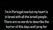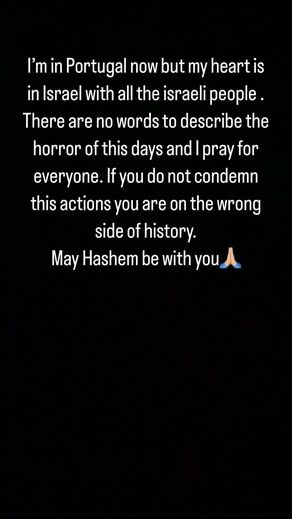 "Estou em Portugal agora mas o meu coração está em Israel com todo o povo israelita. Não há palavras para descrever o horror destes dias e rezo por todos. Se vocês não condenam estas ações estão do lado errado da história. Que Hashem [Deus] esteja convosco", partilhou ontem o antigo guardião do Marítimo e do V. Guimarães nas suas redes sociais.