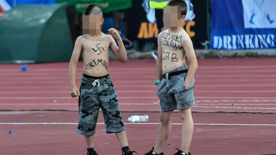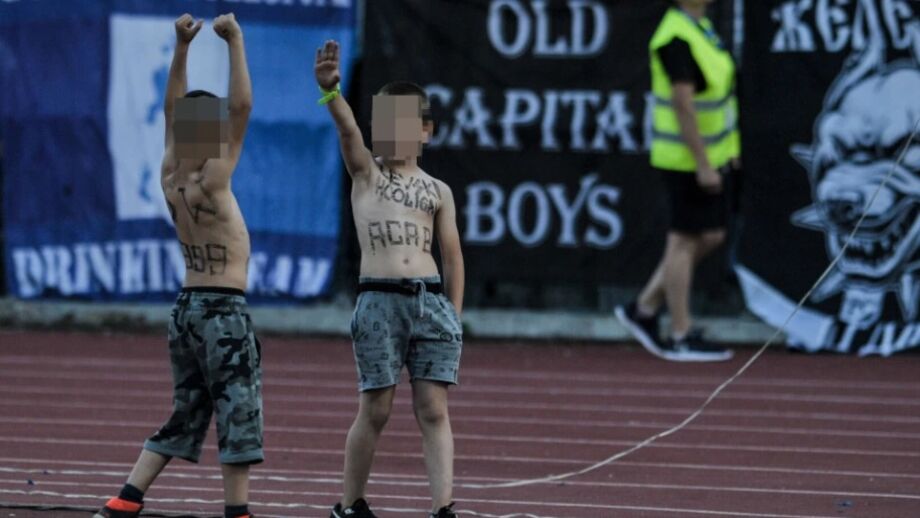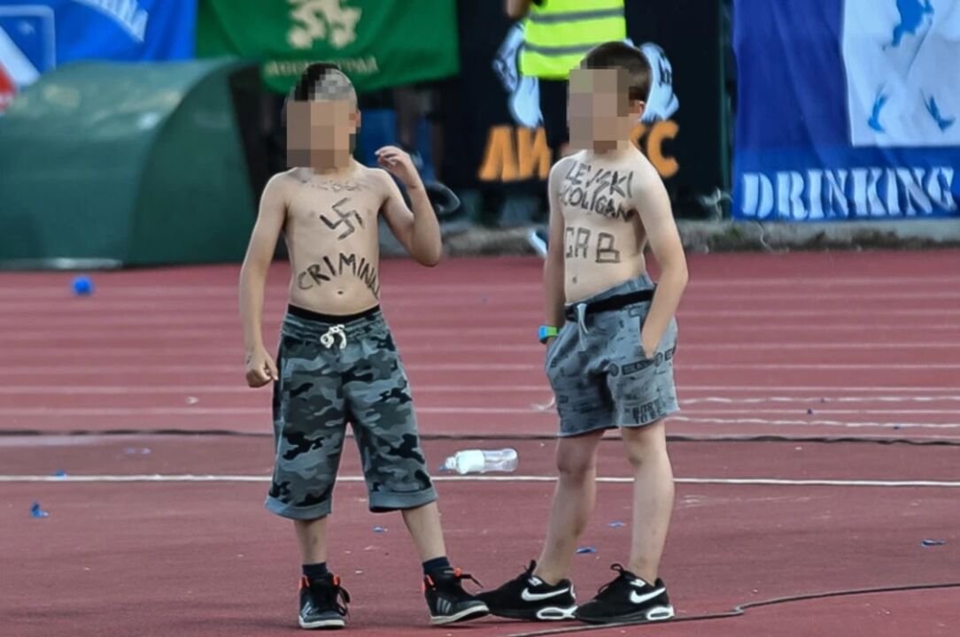 Nelas surgem duas crianças, afetas ao Levski, com várias inscrições xenófobas no corpo. Desenhos de suásticas e a sigla ACAB [‘All cops are bastards’/’Todos os polícias são ***’] são as mais visíveis nos corpos dos miúdos, que não terão mais de 10 anos.