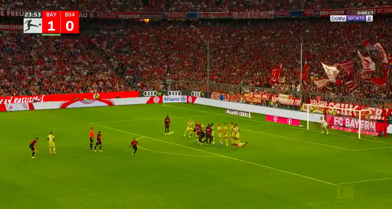 Ao quinto jogo oficial pelo Bayer Leverkusen, Alejandro Grimaldo estreou-se a marcar na Alemanha e logo frente ao Bayern Munique. O lateral espanhol, que deixou o Benfica no final da última temporada, assumiu a marcação de um livre direto em zona frontal à baliza defendida por Sven Ulreich, não dando qualquer hipótese de defesa ao guarda-redes dos bávaros. O defesa empatou a partida num momento em que o Bayer Leverkusen estava em desvantagem.