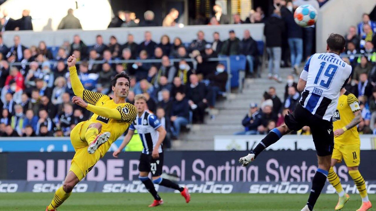 Corria o minuto 45 quando Mats Hummels foi o protagonista de um grande momento de futebol no Arminia Bielefeld-Borussia Dortmund. Na sequência de canto, o internacional alemão aproveitou um ressalto à entrada da área e atirou de primeira para fazer um grande golo, o segundo do Dortmund no encontro.