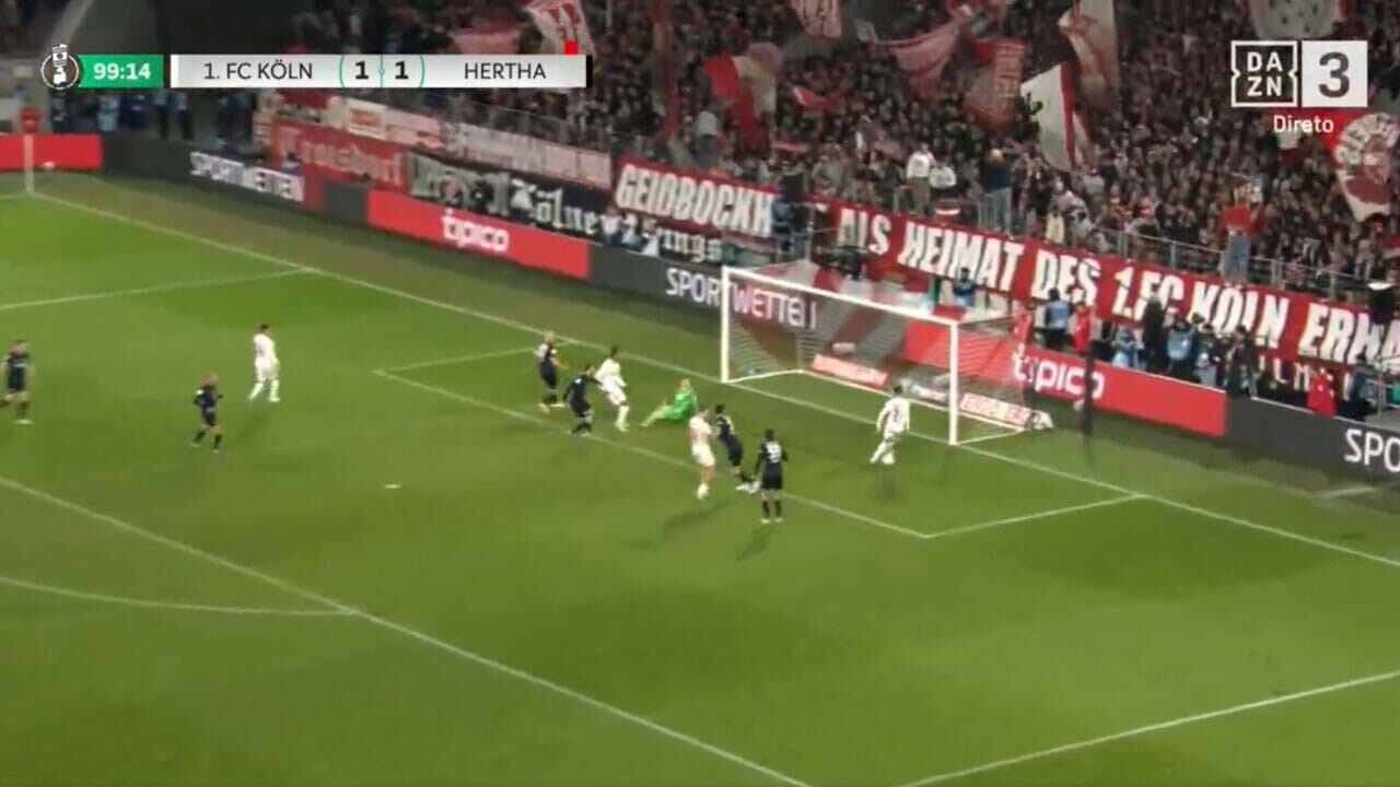 Dejan Ljubicic, médio do Colónia, da Alemanha, protagonizou esta quarta-feira, na vitória frente ao Hertha na Taça (2-1), aquele que promete ser um dos falhanços do ano. No minuto 100, o austríaco apareceu completamente sozinho praticamente em cima da linha de baliza e acabou por falhar a bola, num lance... inacreditável. Ora veja!