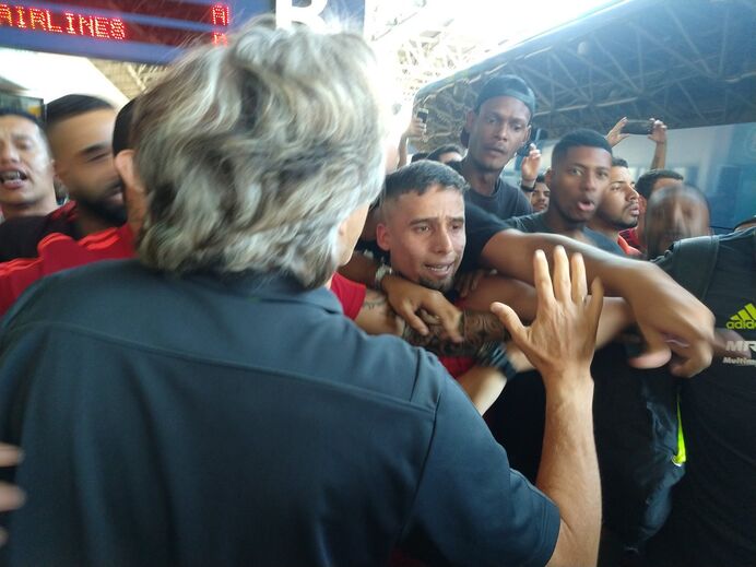Os jogadores, segundo a imprensa brasileira, hesitaram em sair do autocarro e quem acabou por tentar conversar e acalmar os adeptos foi precisamente Jorge Jesus, que saiu disparado da viatura.