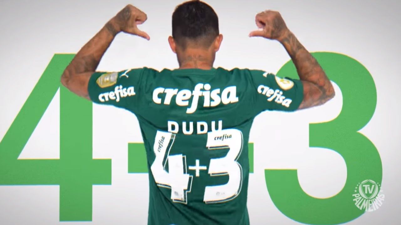 Na primeira passagem pelo Palmeiras, iniciada em 2015, Dudu jogava com o '7' mas agora o número já tem dono (Rony) e a solução encontrada foi a soma de dois algarismos. Assim, Dudu vai alinhar com '4+3' na camisola.
