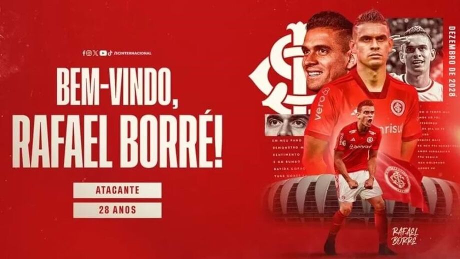 O Internacional de Porto Alegre oficializou a contratação do avançado Rafael Santos Borré. O colombiano estava ao serviço do Werder Bremen, por empréstimo do Eintracht Frankfurt.