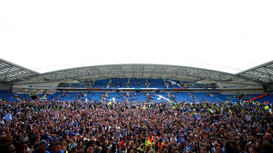 O Brighton & Hove Albion é a primeira equipa a assegurar a promoção para a Premier League de 2017/18. Esta segunda-feira, ao início da tarde o conjunto do Sul de Inglaterra cumpriu a sua missão, ao derrotar em casa o Wigan, por 2-1, mas para celebrar já a subida tinha de esperar pelo deslize do Huddersfield Town diante do Derby County, às 17.30. E acabou por ser mesmo isso que sucedeu, com um empate a um golo que permitiu a subida à elite, um palco onde não atua há 34 anos.