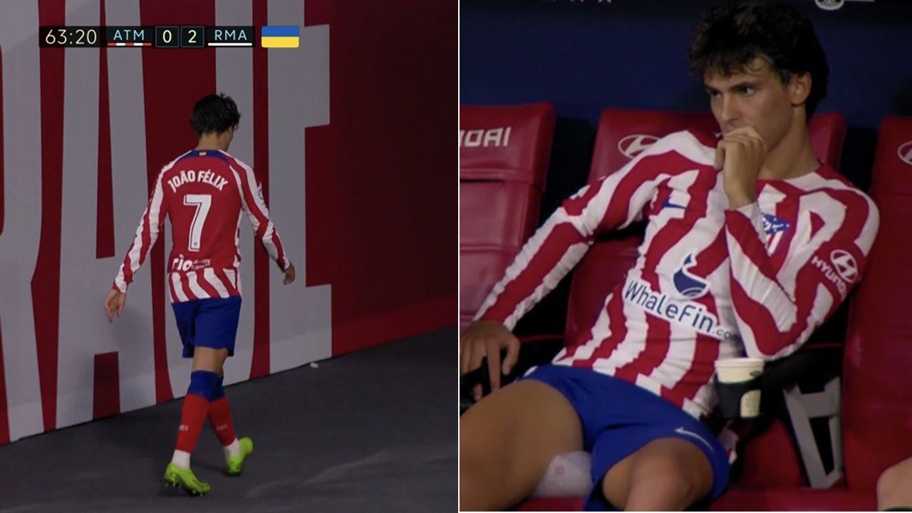 João Félix foi substituído aos 62' do Atlético Madrid-Real Madrid, quando os colchoneros perdiam por 2-0 e procuravam voltar ao jogo. O internacional português saiu visivelmente insatisfeito e foi diretamente para o balneário.