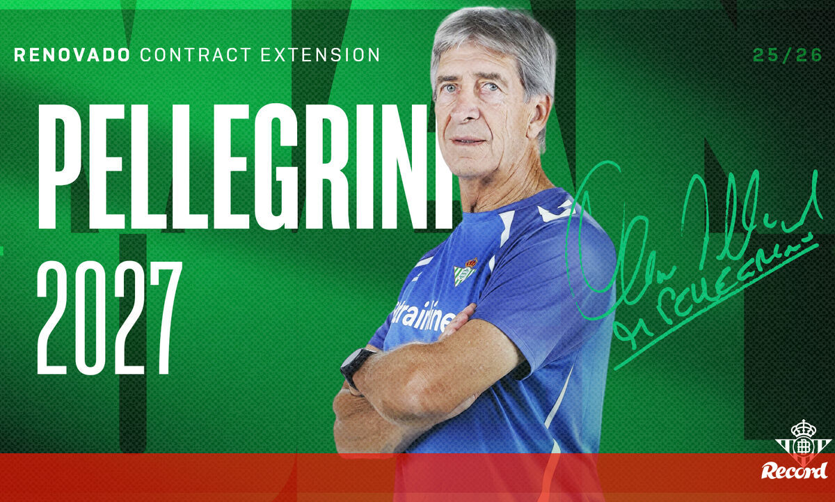 O treinador chileno Manuel Pellegrini renovou contrato com o Betis por mais uma época, permanecendo no emblema andaluz até junho de 2027, anunciou esta sexta-feira o clube da Liga espanhola.
