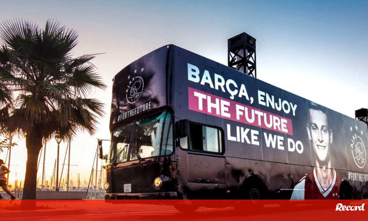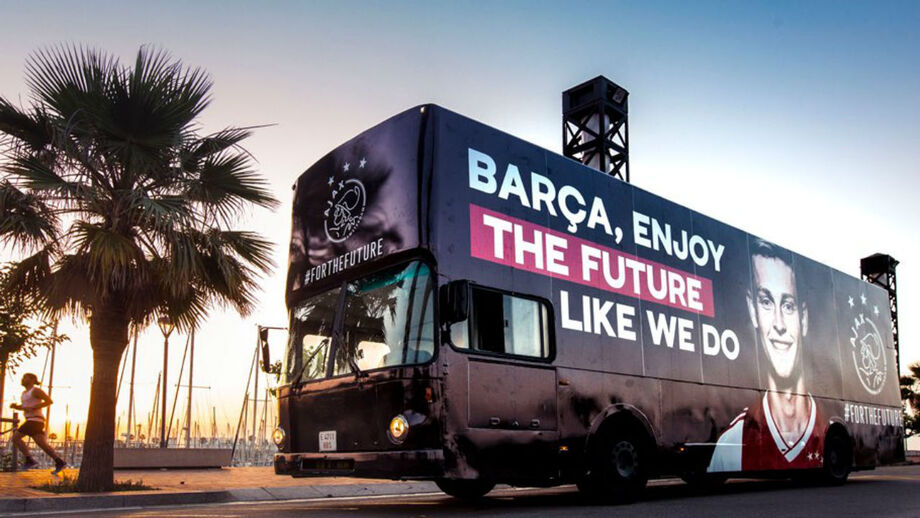 Mas o Ajax não se ficou por aqui e usou algum dinheiro dos 75 milhões de euros que recebeu pelo jogador para fazer a mesma publicidade num autocarro, igualmente na cidade de Barcelona.