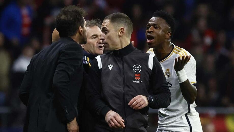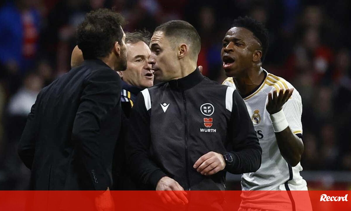 Como já nos habituou, o dérbi de Madrid desta quinta-feira entre Atlético e Real ficou marcado por momentos de enorme tensão, um dos quais protagonizado por Vinícius Júnior, extremo dos merengues, e Diego Simeone, treinador dos colchoneros. A troca de argumentos mais acesa entre os dois, revela a imprensa espanhola, começou quando o brasileiro olhou para o técnico argentino e, enquanto este discutia com o árbitro, lhe sinalizou o número 7, aquele que usa na camisola. Ora, é caso para dizer que Simeone não ficou contente: "Sete é a c... da tua mãe!", atirou o treinador - que acabou por ver o cartão amarelo segundos depois -, visivelmente irritado.