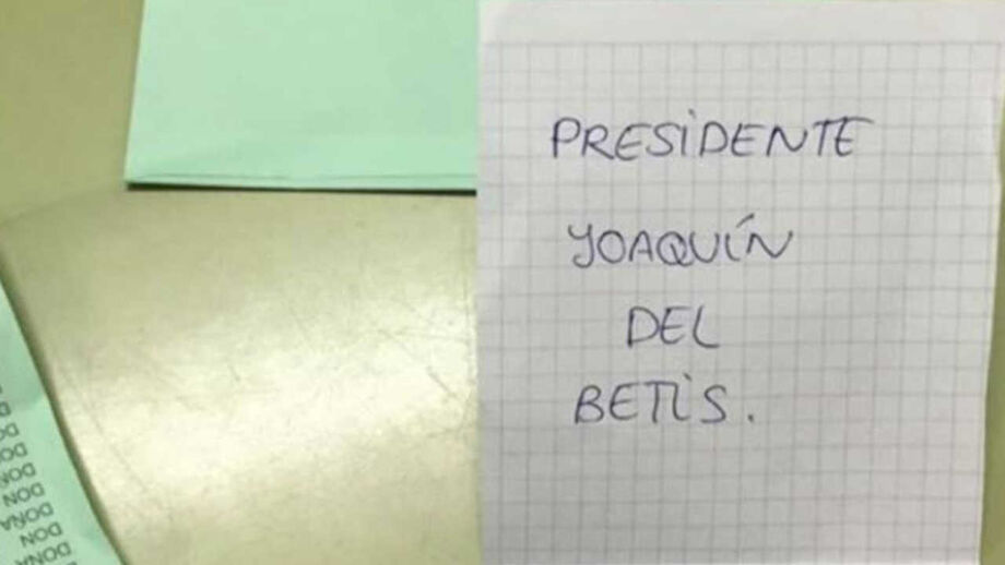 Numa folha quadriculada destinada ao voto, pôde ver-se que alguém apostou no avançado de 37 anos para presidente da Andaluzia (mesmo sabendo que iria ser um voto nulo). "Presidente Joaquín do Betis", podia ler-se na folha.