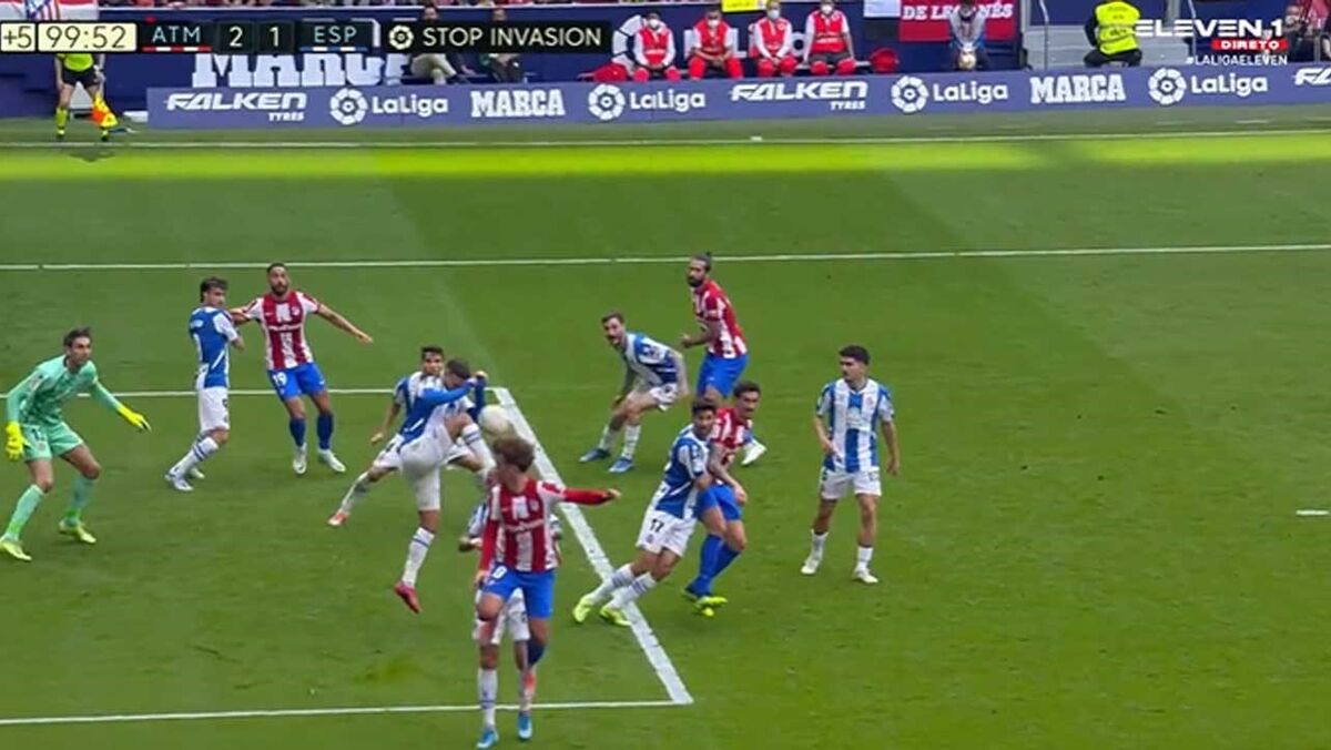 O Atlético Madrid venceu em casa o Espanyol por 2-1, para a 32.ª jornada da Liga espanhola, numa partida com final polémico. Os colchoneros chegaram ao triunfo com um penálti aos 90'+10, cometido por Raul de Tomás - que havia marcado antes o golo dos catalães -, num lance em que o árbitro consultou as imagens antes de tomar a decisão. Veja a jogada em baixo: