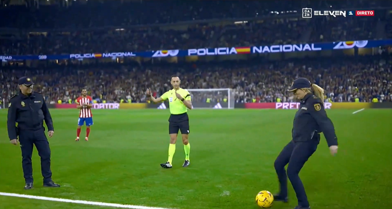 Fundada em 13 de janeiro de 1824, a Polícia Nacional espanhola cumpre este ano o seu 200.º aniversário. Em jeito de homenagem, a La Liga decidiu oferecer o pontapé de saída do dérbi entre Real Madrid e Atlético Madrid, que se disputa este domingo no Santiago Bernabéu, às forças de segurança espanholas. O momento foi captado pela transmissão televisiva do encontro, que em Portugal fica ao abrigo da DAZN/ELEVEN.