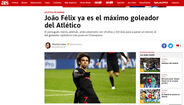 "Pela primeira vez num jogo oficial, os três rapazes mais perigosos de Simeone, os que mais golos têm no seu ADN, estiveram juntos no relvado. Um alívio para o jovem João Félix, muito mais cómodo com a baliza a poucos metros de distância. Foi dali que o português descobriu a solução para os problemas do Atlético com o golo. Às vezes, como aconteceu esta noite, a solução é simplesmente uma coisa de meninos."