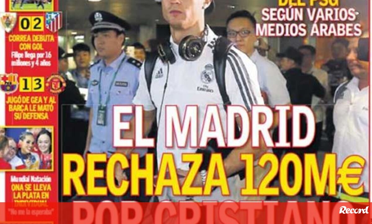 O Real Madrid recusou uma proposta de 120 milhões de euros do Paris SG por Cristiano Ronaldo, o que devolveria ao internacional português o estatuto de jogador mais caro da história do futebol, superando os 101 de Gareth Bale, em 2013.