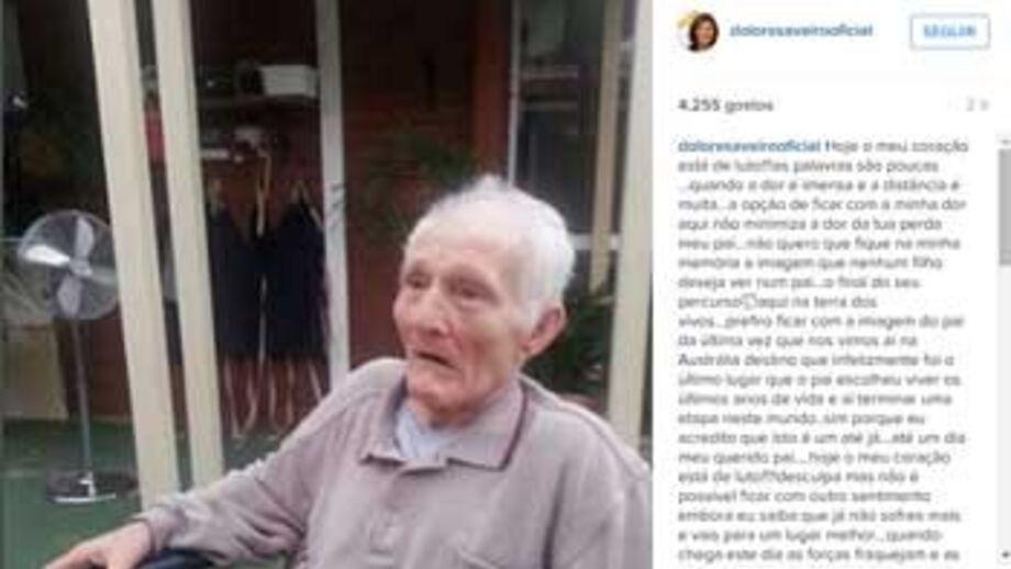 "Hoje o meu coração está de luto!!!as palavras são poucas ...quando a dor é imensa e a distância é muita...a opção de ficar com a minha dor aqui não minimiza a dor da tua perda meu pai...não quero que fique na minha memória a imagem que nenhum filho deseja ver num pai...o final do seu percurso aqui na terra dos vivos...prefiro ficar com a imagem do pai da última vez que nos vimos ai na Austrália destino que infelizmente foi o último lugar que o pai escolheu viver os últimos anos de vida e aí terminar uma etapa neste mundo..sim porque eu acredito que isto é um até já...até um dia meu querido pai....hoje o meu coração está de luto!!!!desculpa mas não é possível ficar com outro sentimento embora eu saiba que já não sofres mais e vais para um lugar melhor...quando chega este dia as forças fraquejam e as lágrimas da perda teimam em cair...o mano lá no céu te espera meu pai...manda beijos por mim e outro no teu coração com toda a minha alma desta tua filha mais velha que te pede que lá do céu protejas a mim aos meus filhos e netos e que dês sempre uma luz aos nossos dias de dor..da tua e sempre filha Dolores...", escreveu.