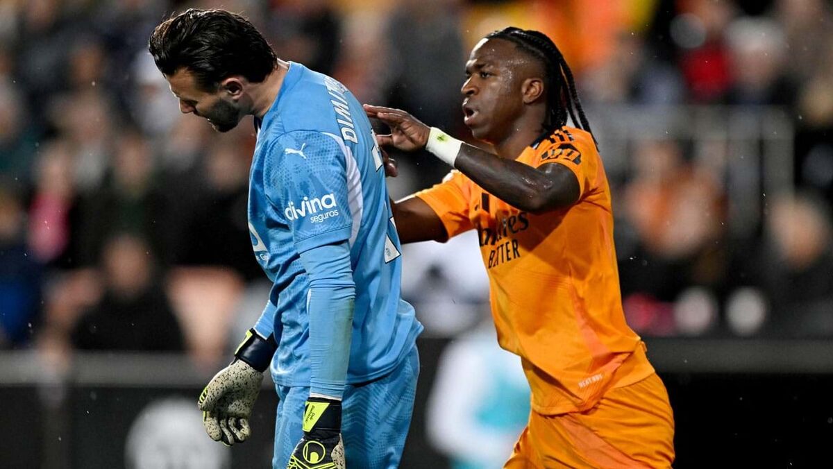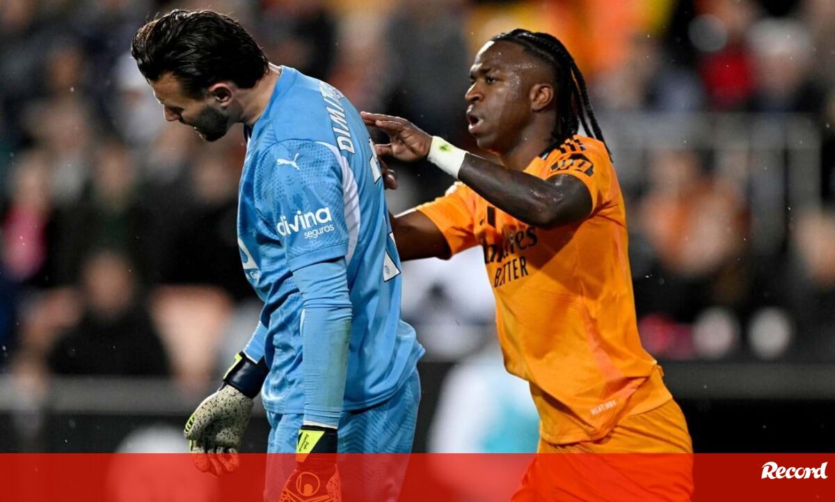 Aos 79 minutos do Valencia-Real Madrid (1-2), Vinícius Jr. viu cartão vermelho direto por agredir Stole Dimitrievsk, guarda-redes da equipa da casa. O avançado brasileiro ficou visivelmente irritado com a decisão do árbitro - tomada depois de consultar as imagens do VAR - e teve de ser agarrado por companheiros e elementos da equipa técnica.