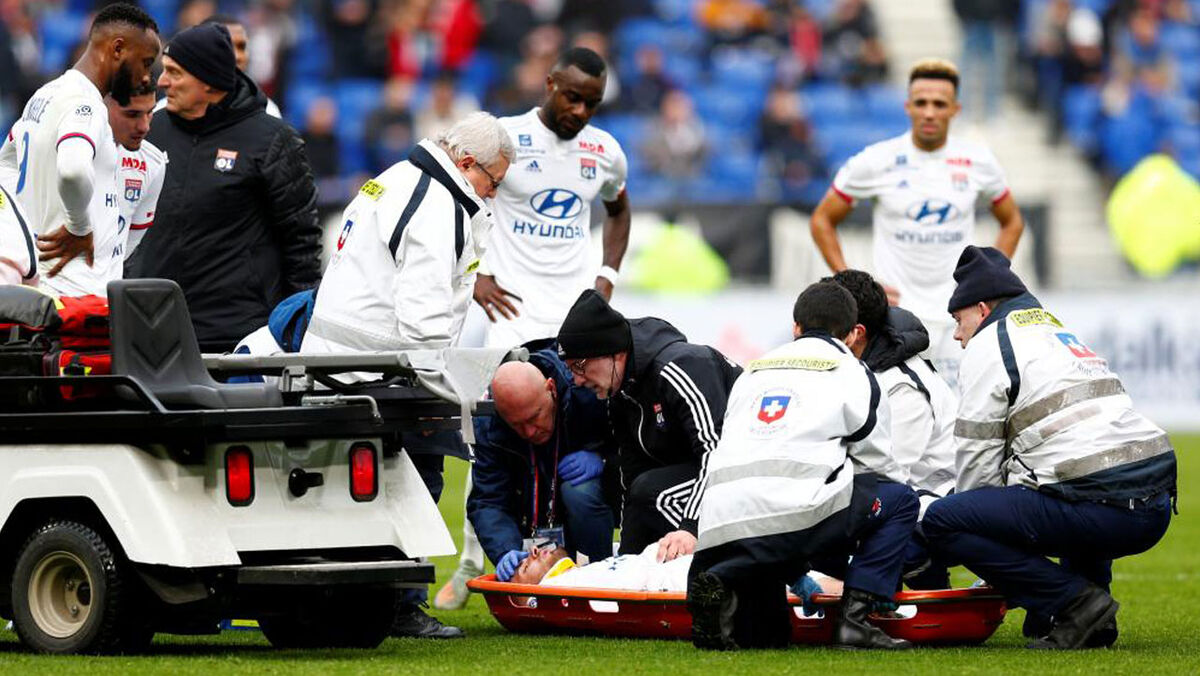 Aos 21 minutos, quando a formação da casa estava a atacar, o jogador de 22 anos caiu inanimado no relvado do Estádio Groupama e o árbitro interrompeu o encontro de imediato. Terrier foi prontamente assistido pela equipa médica e deixou o relvado no carro-maca, sendo substituído e transportado ao hospital mais próximo.