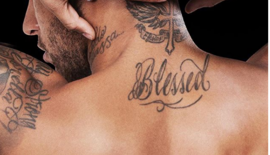 No Instagram o jogador mostrou também uma nova tatuagem. Eternizou a palavra "Blessed" (abençoado) um pouco abaixo da nuca...