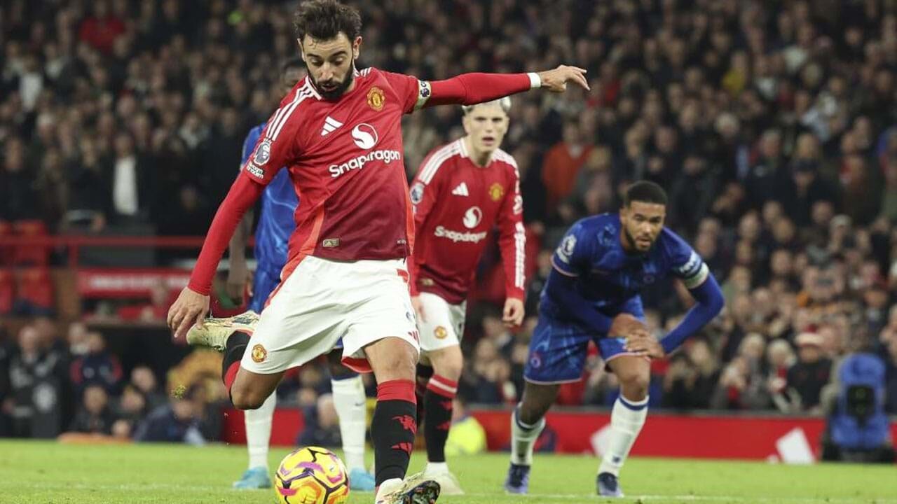 O Manchester United voltou a perder pontos na Premier League, cedendo um empate caseiro com o Chelsea (1-1) e mantendo um modesto 13.º lugar a cerca de uma semana de Rúben Amorim tomar conta da equipa. Bruno Fernandes voltou aos golos, convertendo com frieza um penálti evidente do guardião Sánchez sobre Hojlund – o capitão não marcava no campeonato desde abril, quando fez um bis ao Sheffield United –, mas quase de imediato Moisés Caicedo restabeleceu o empate. Pedro Neto cumpriu os 90 minutos e João Félix nem saiu do banco.