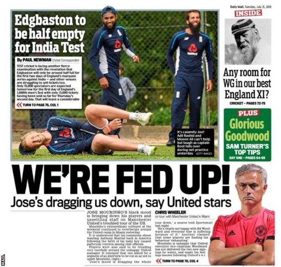 José Mourinho espera por reforços e os jogadores do Manchester United desesperam com a atitude do treinador português: "estão no limite", segundo a imprensa britânica desta terça-feira. As duras críticas do técnico, sábado, após a sua equipa ser goleada pelo Liverpool (4-1), em jogo de pré-época disputado em Michigan, EUA, voltaram ontem a ouvir-se. Mourinho insiste na falta de jogadores e a forma como tem demonstrado a sua insatisfação está a afetar o plantel.