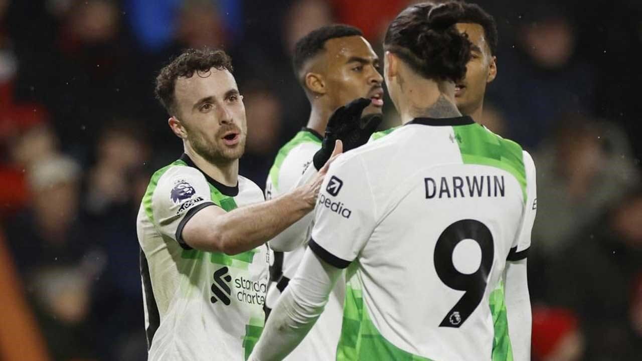 Jota e Darwin bisam na goleada que permitiu ao Liverpool alargar a vantagem na frente