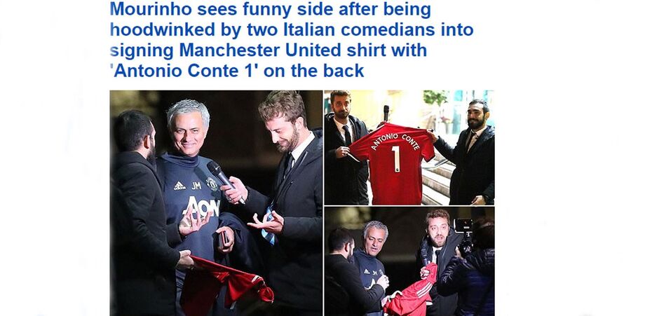 Alessandro Onnis e Stefano Corti, apresentadores do programa, fizeram uma espera a José Mourinho no Lowry Hotel de Manchester, onde o treinador do United está instalado, e depois dos cumprimentos e de uma breve troca de palavras, convenceram-no a autografar uma camisola dos red devils.