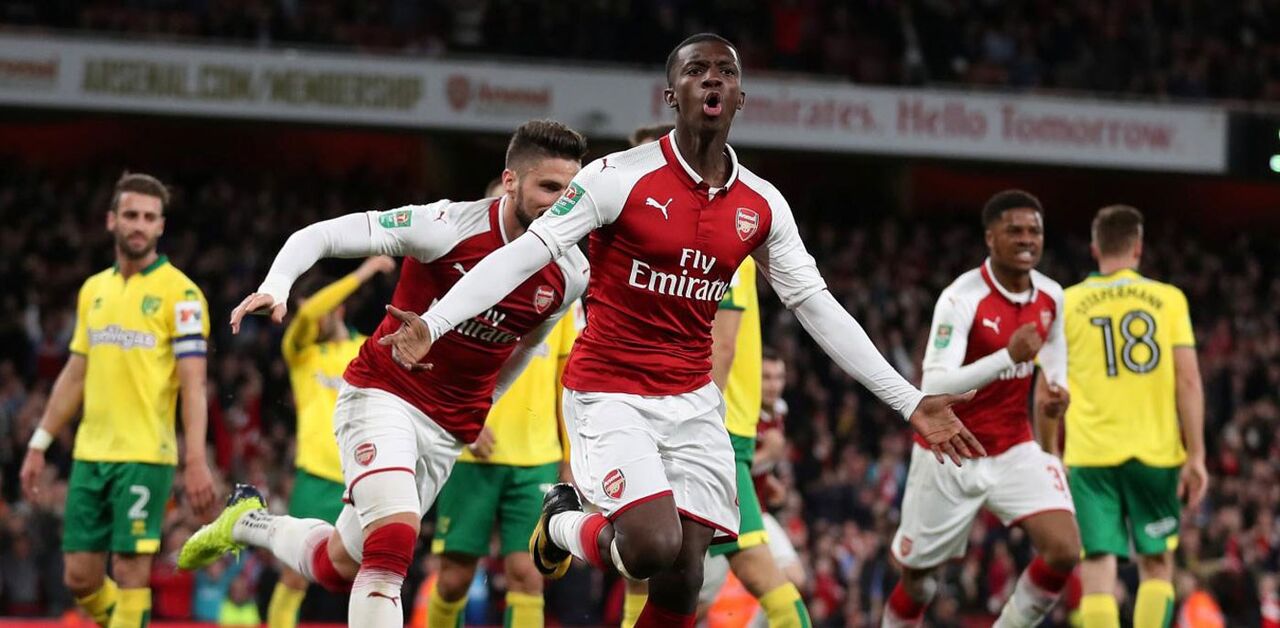 O Arsenal necessitou do prolongamento para superar o secundário Norwich, por 2-1, e apurar-se para os quartos-de-final da Taça da Liga inglesa. Aos gunners valeu a inspiração do jovem Edward Nketiah, de 18 anos, lançado por Arsène Wenger aos 85' e que marcou de imediato, acabando igualmente por fazer o golo da vitória no tempo extra (96').