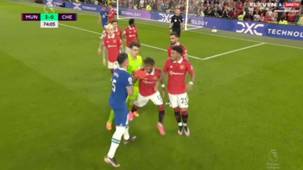 Após Bruno Fernandes fazer o 3-0 no Manchester United-Chelsea (o jogo acabaria em 4-1), Enzo Fernández foi pedir satisfações ao médio português, descontente com a celebração deste após marcar de penálti - através das imagens televisivas, parece fazer um gesto para o guarda-redes Kepa.