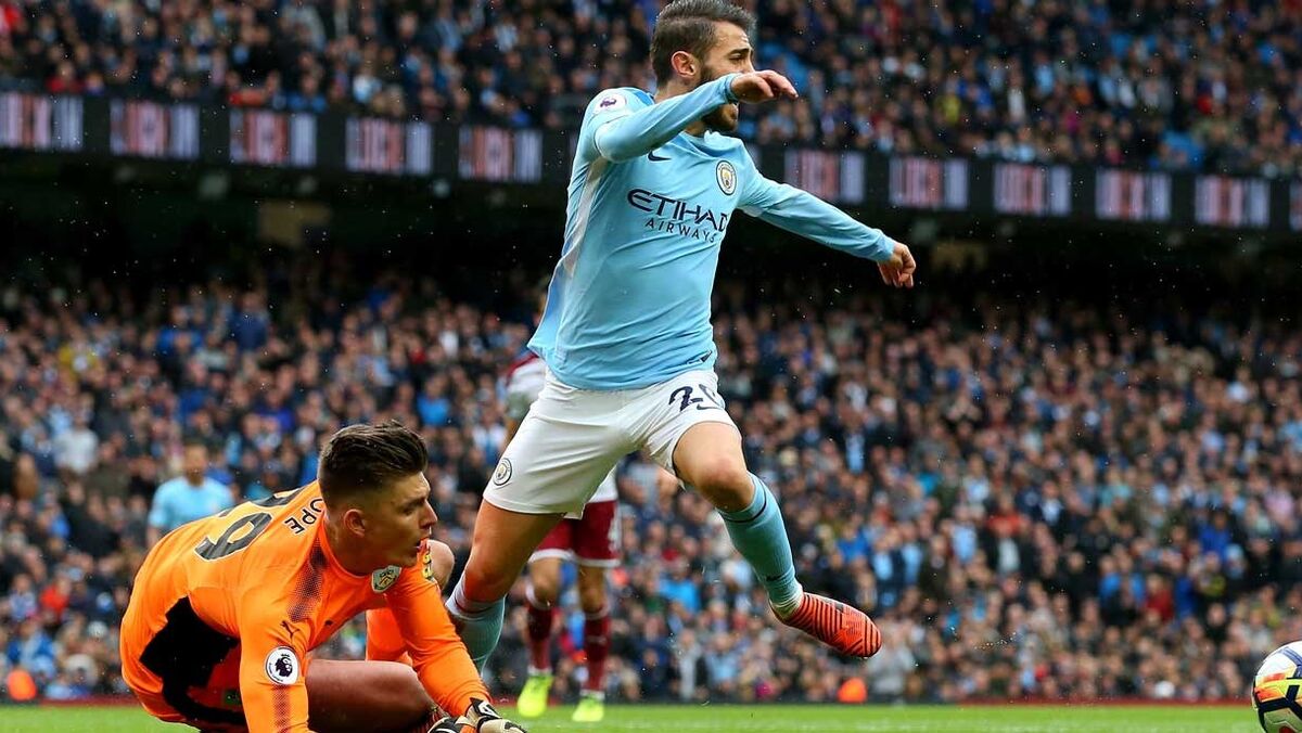 O médio Bernardo Silva entrou no 'radar' da Sky Sports por causa do que esteve na origem do primeiro golo do Manchester City frente ao Burnley, na tarde de sábado (3-0): o internacional português foi tocado por Nick Pope dentro da área e o árbitro Roger East assinalou penálti que Sergio Agüero converteu.