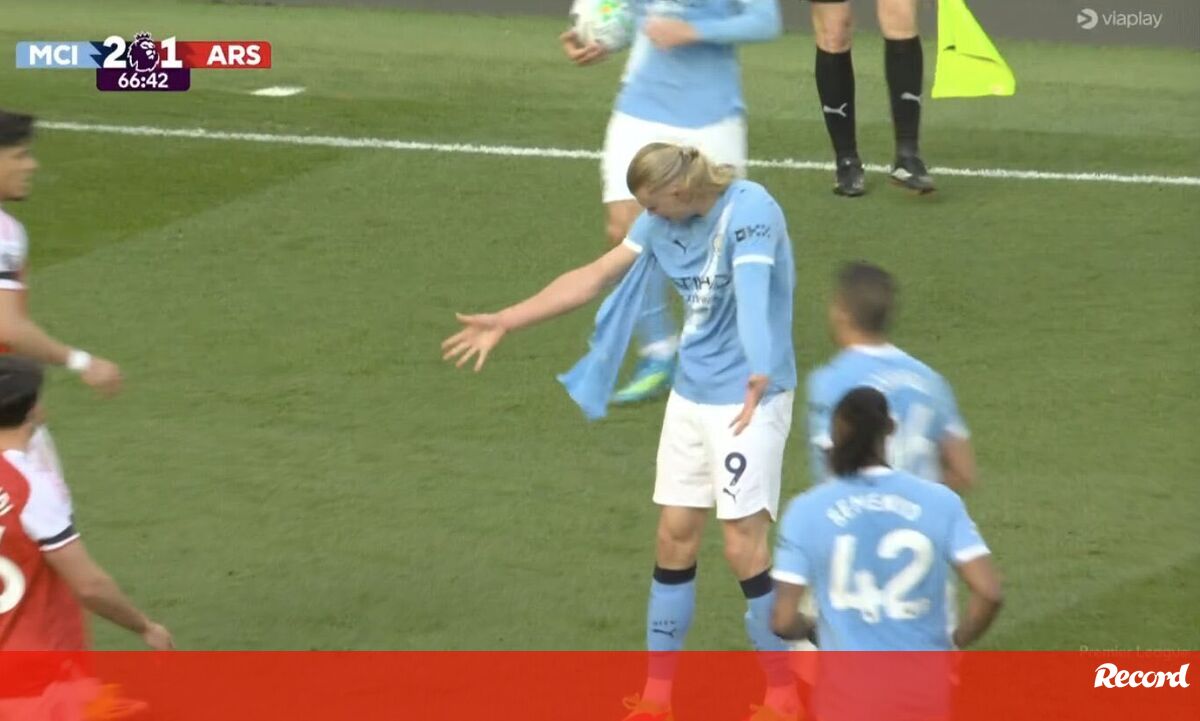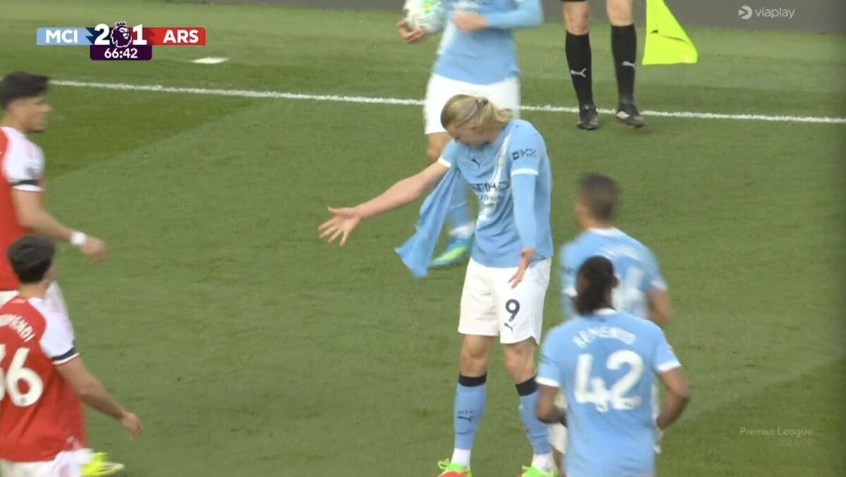 Os duelos entre Erling Haaland e Gabriel Magalhães no Man. City-Arsenal têm sido intensos e muito picados e, aos 66 minutos, o norueguês acabou mesmo com a camisola interior rasgada. Na sequência desse momento, o avançado atirou-a para a bancada. Resta agora saber quem terá ficado com ela...