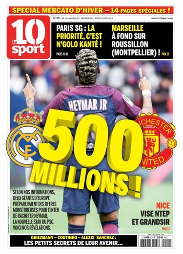 O Manchester United estará a trabalhar numa proposta a apresentar ao Paris Saint-Germain (PSG) no final da temporada com vista à contratação de Neymar. A revista francesa 'Le 10 Sport' fala numa verba a ronda os 500 milhões de euros.