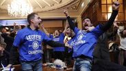 Uma festa que se fez no sofá... da casa de Jamie Vardy. É que o avançado reuniu em sua casa o restante plantel para assistir ao encontro desta noite entre spurs e blues, uma reunião que acabou mesmo em festa rija... sem a presença de Claudio Ranieri. O técnico italiano foi a Itália esta segunda-feira e acabou por não assistir ao encontro dos londrinos.