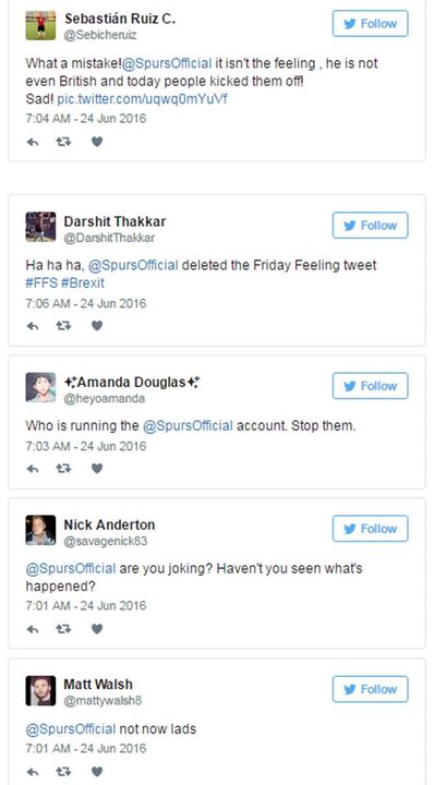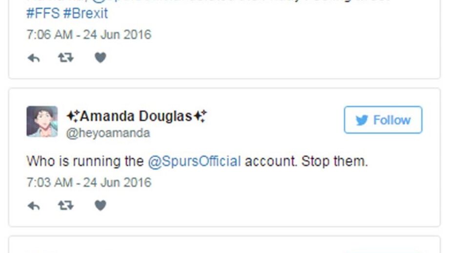 Ora, as críticas não tardaram a chegar, bem como o 'ataque' à página de Twitter dos spurs principalmente da falange dos 48,1% britânicos que votaram a favor da manutenção na UE.