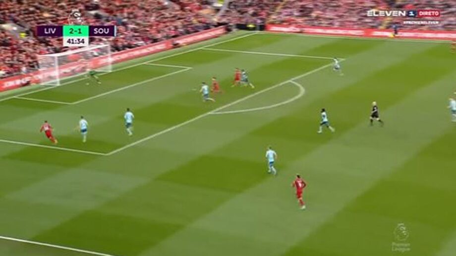 Darwin Núñez fez balançar as redes do Southampton aos 21 minutos e, já perto do intervalo, voltou a faturar, desta feita após uma jogada pelo lado direito do ataque do Liverpool e a passe de Robertson, que fazia assim a segunda assistência no jogo.