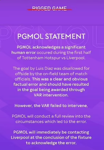 O jogo que marcou pela negativa a última jornada da Premier League continua a dar que falar em Inglaterra e até a mulher de Diogo Jota já comentou o sucedido. O Tottenham-Liverpool (2-1) ficou marcado por um erro da equipa de arbitragem, que não validou um golo limpo de Luis Díaz, o que motivou um comunicado da associação de árbitros (PGMOL) a assumir a falha.